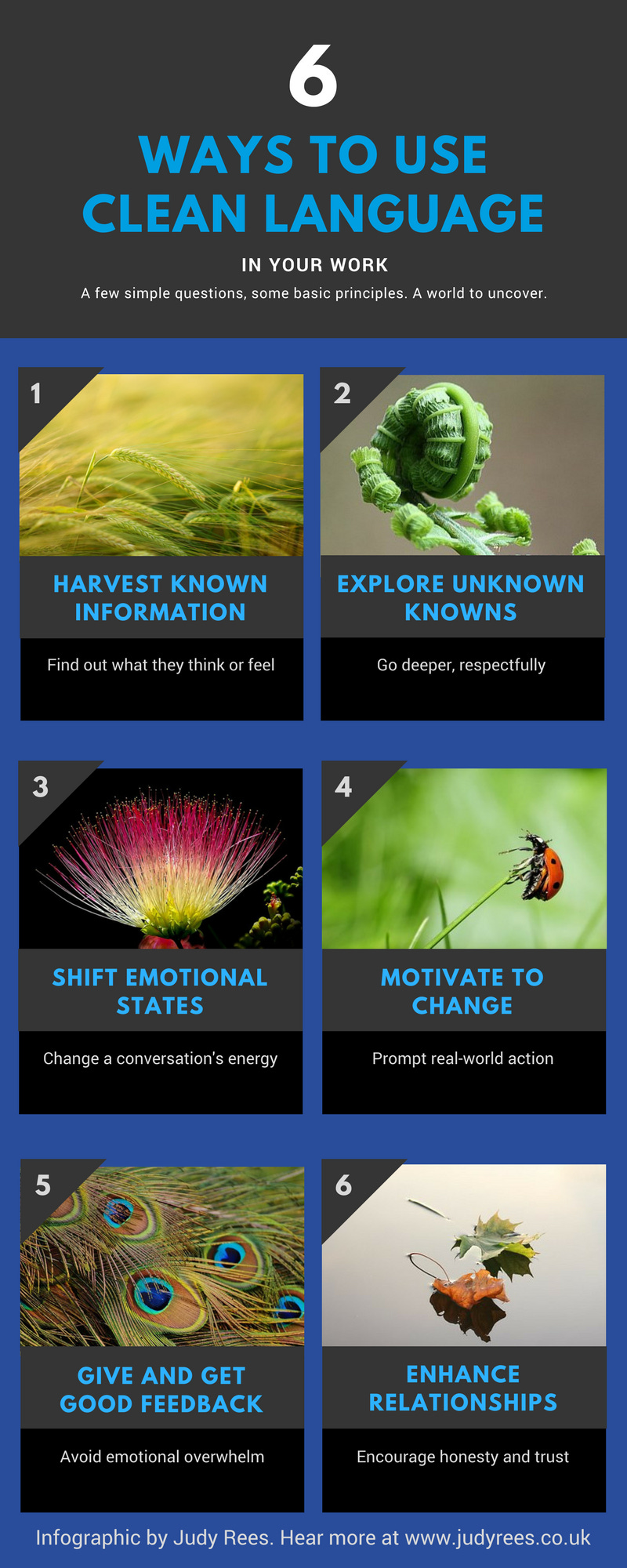 Six Ways To Use Clean Language In Your Work – A Clean Language Infographic