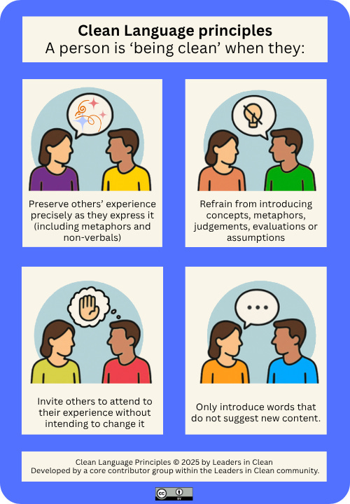That was the challenge from a group of enthusiasts this week. They'd experienced the power of Clean Language themselves. Now they wanted to convince their organisation to invest in it - and in me.